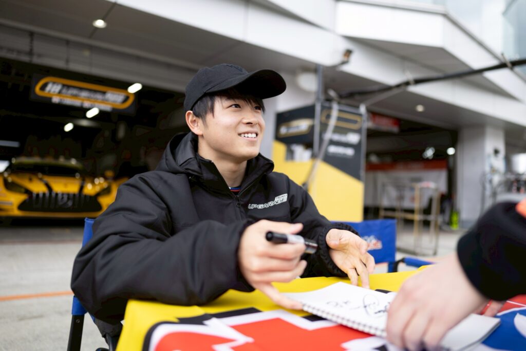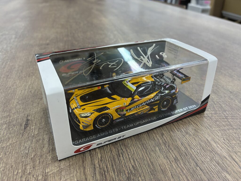 Sparkより2027年2月ごろ発売予定の「UPGARAGE AMG GT3 2026ver」モデルカーに、小林選手・新原選手のサインをいただき贈呈いたします!