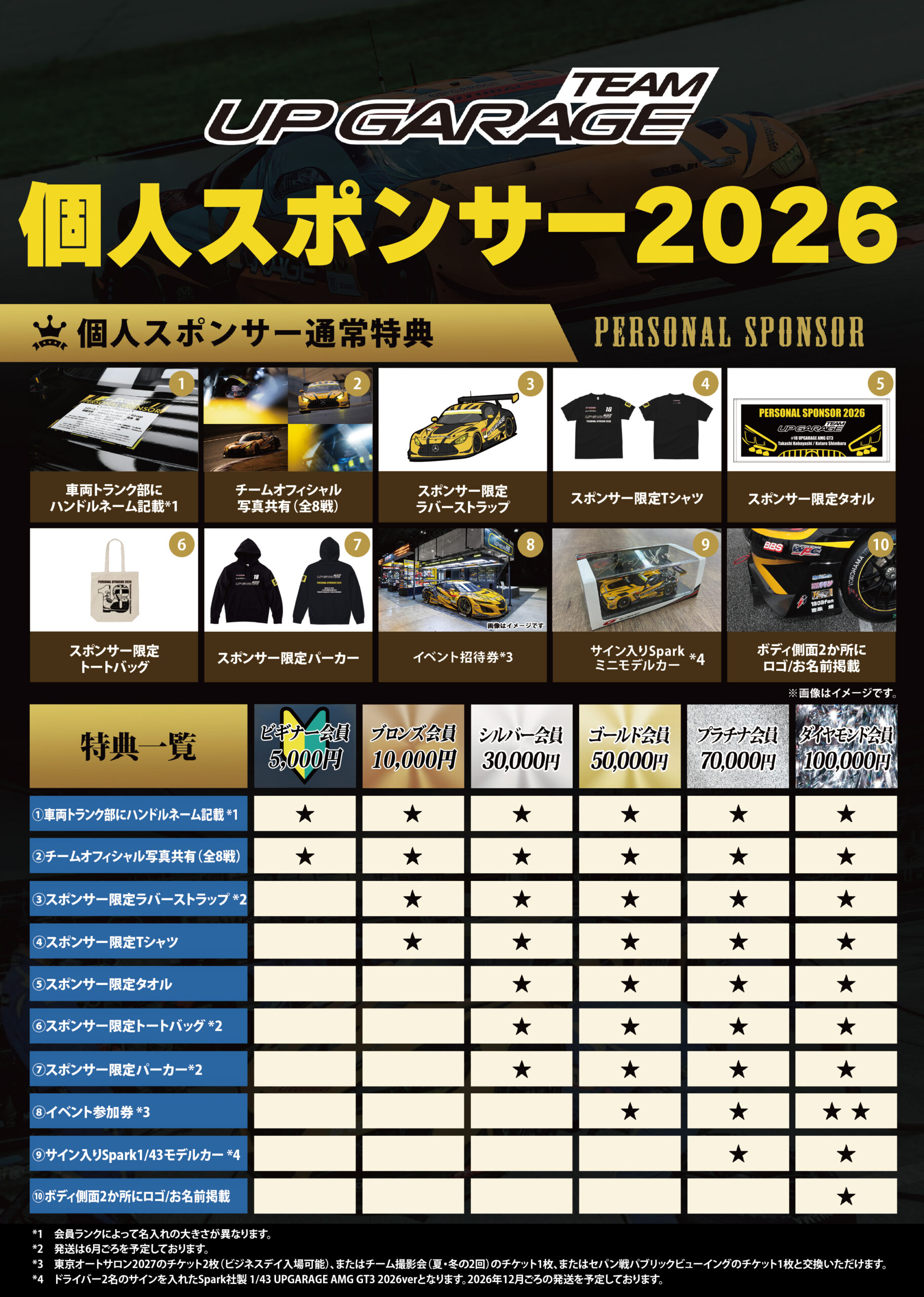 2015年の「TEAM UPGARAGE」発足時より実施しているファンの皆様へ向けたスポンサー制度です。